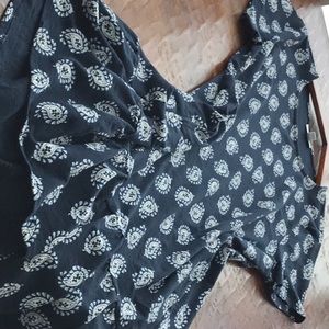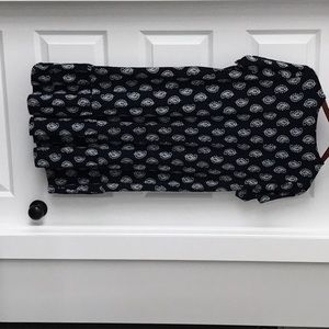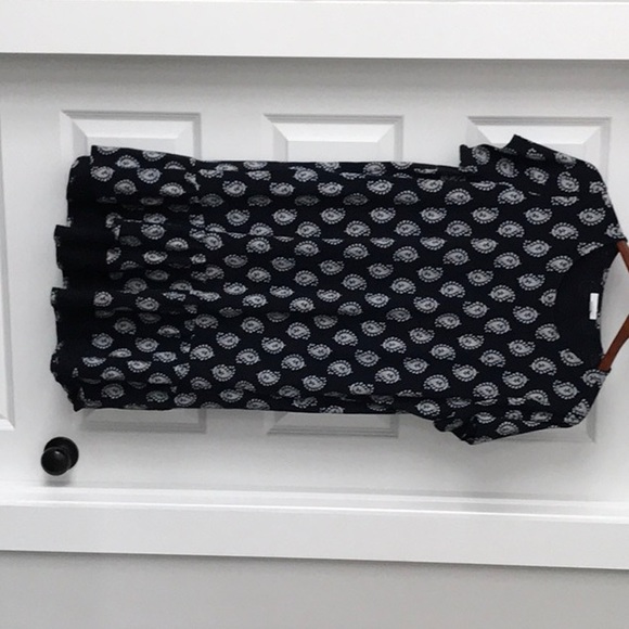 J Jill dress with pockets on each side. It is blue and white. Looks great with a jean jacket. Hem is lower in the back and ruffles at the bottom.