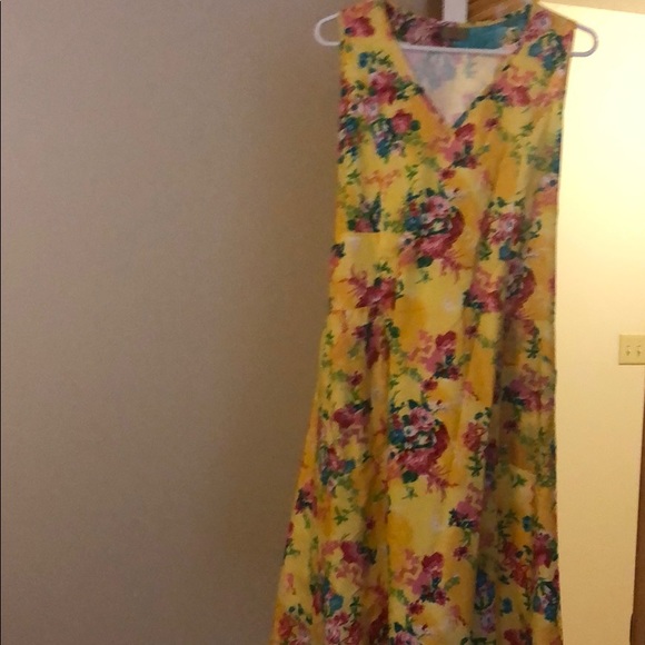 Stay cool (and be seen) in this adorable yellow floral cotton dress. The high waist and seams along bust in front plus ties in back allow for that perfect custom-did. Cute bucket pockets in front. NWT. Runs big.