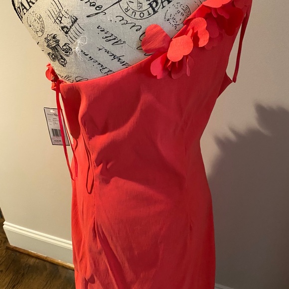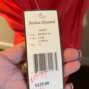 Jessica Howard dress in coral with off shoulder and ruffles! Picture does not do this dress justice!