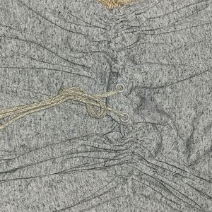 Grey VS, tie at waistline. Never been worn. Purchased for swim cover-up and it never got warm enough on vaca. Now it no longer fits.