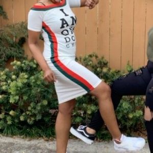 Cute off the shoulder midi dress. Pair with cute sneakers