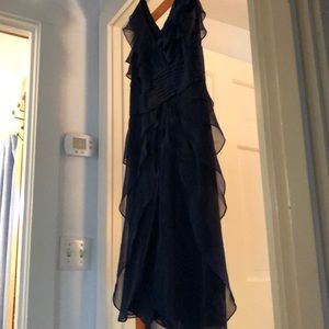 Great dress to wear to a wedding. Looks great on the dance floor. Only worn once. The color is a dark dark teal color