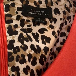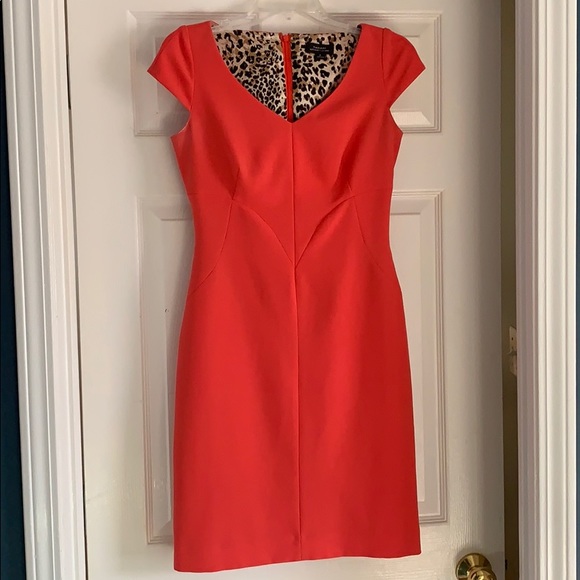 ** The color in person is more coral. Tahari dress.