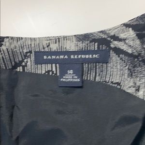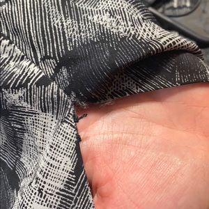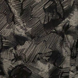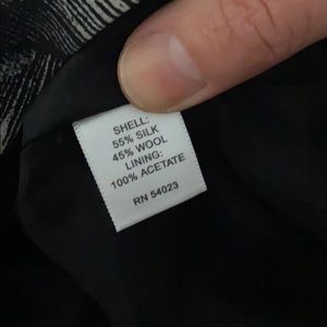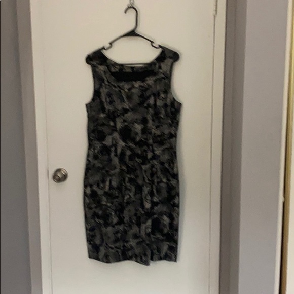 Black and grey patterned dress with zip up back and pockets. Pleated front. Minor tear in back bottom seam/slit. Can be mended easily.