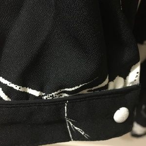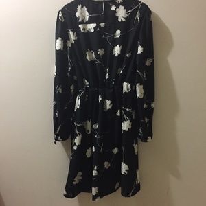 Long sleeve dress, elastic waist, lined from the waist down, polyester, machine wash, covered buttons at sleeve and back, piping detail at shoulder, never worn, tag on.