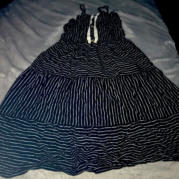 There are three buttons spaghetti straps kind of wavy.A little tight and fitted around the upper top of the body.