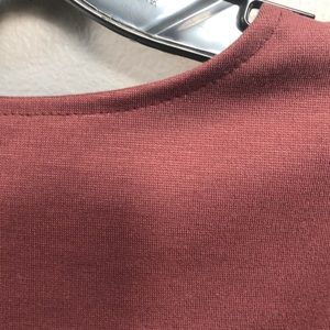 Burgundy leatherette dress in front, knit in the back. Worn only once and in perfect condition..