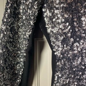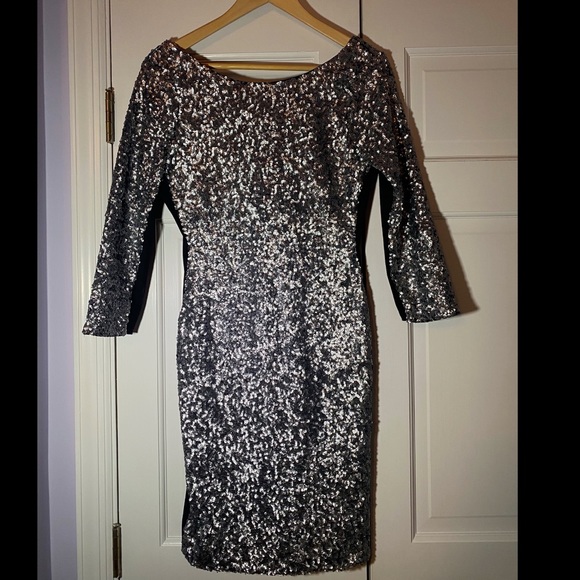Form fitting sequined silver dress