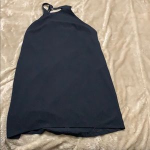 Little black dress backless but looks great with any form fitting shirt layered. Medium length