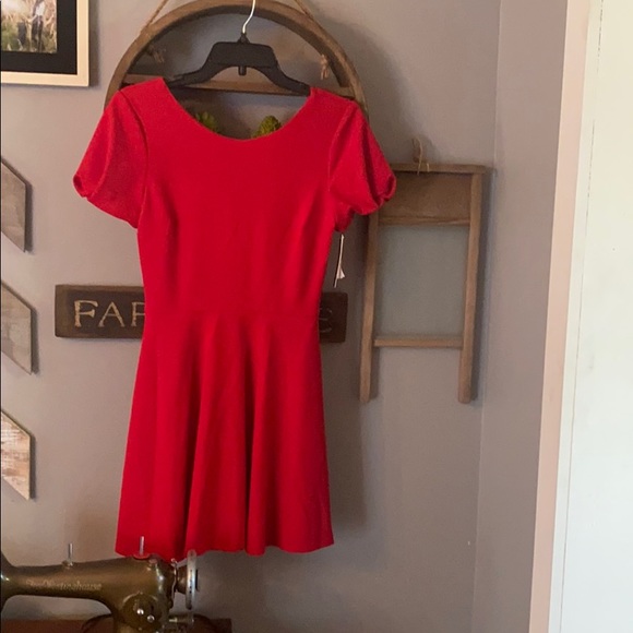 Red mini dress - Juniors size S - Brand new with tags - Never worn! - Ruffled sleeves - open zipped back. Get ready for spring!