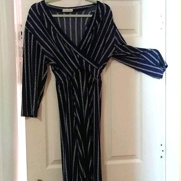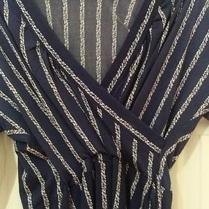 Navy blue and white wrap-look
