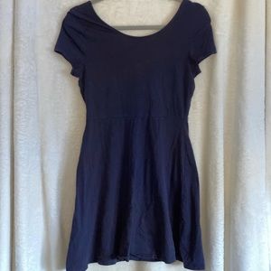 Casual navy blue skater dress with knot detail on the front