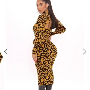 Fashion Nova Midi length Sweater Dress. This dress is gorgeous. Eye catching yellow, leopard pattern. Stretch, comfy, and sexy. This dress is constantly sold out. I wore it once for my Birthday Dinner. This is a size medium. I'm a size 10 and it fits me perfectly. It's sold out on Fashion Nova ,so grab it here at a discount price, it's in perfect condition.
