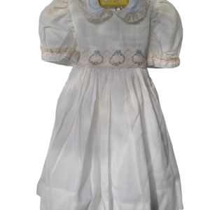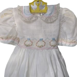 Vintage Nieman Marcus smocked girls dress. New unused, pinafore underneath.