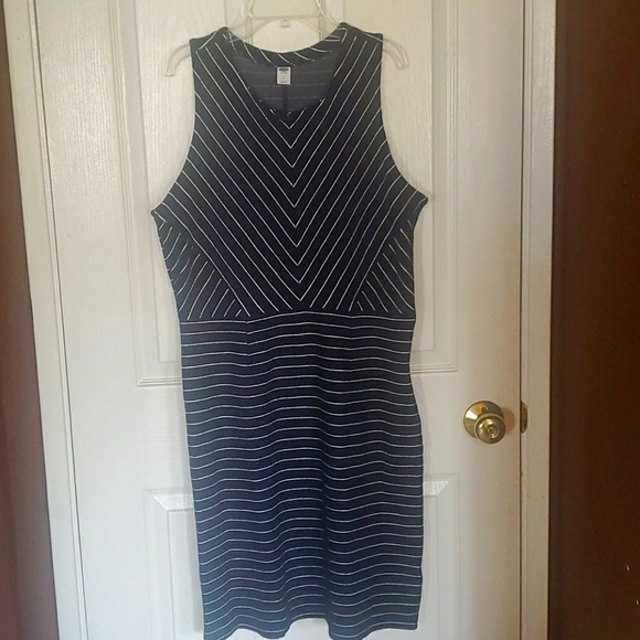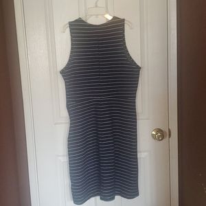 Navy Blue and White striped dress.Zips on the side..stretchy material. Worn one time only.