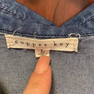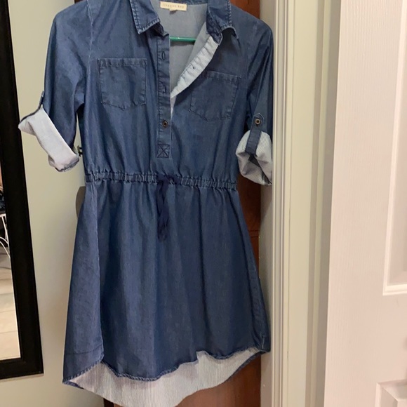 Blue Jean dress with pull string in center, and quarter sleeve