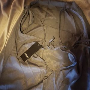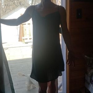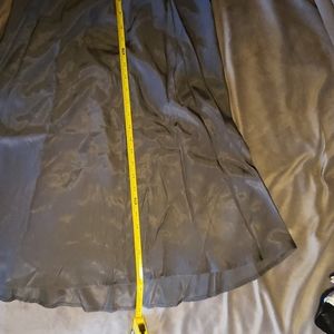 Satin; soft, comfortable open back dress. Smoky gray satin shiny.