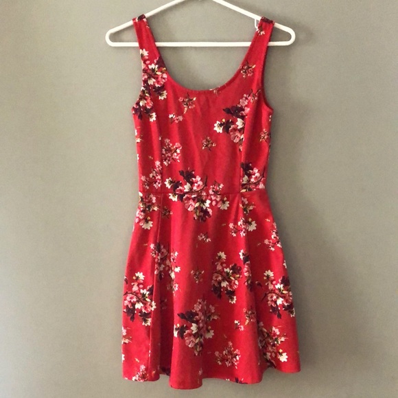 Tank top skater dress from H&M with a floral pattern against a rich red color!