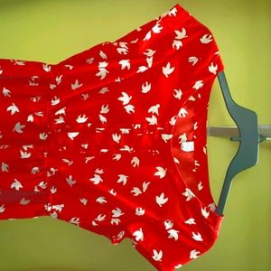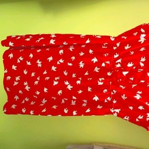 A beautiful red dress with lovely doves on it. Great for this upcoming spring, especially since patterns are making it's way back