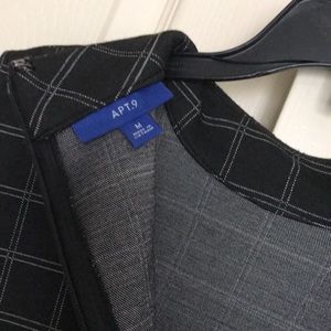 Black/ oxford gray office dress, sleeveless, hidden pockets, closure in the back with zipper, 97% polyester, 3% spandex, never wore, but not tags.