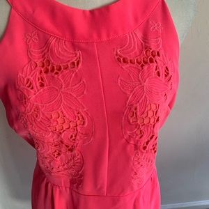 Stunning hot pink dress! This dress is very similar to Lilly Pulitzer style. Make a statement at any event with this beautiful dress, slightly A-line fitted with gorgeous embroidered front this dress zips all the way in back. A perfect dress for a summer wedding!