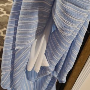 Blue and white stripped belted dress with pockets. soft flowy cotton material. White lining to the knee. Never worn below knee length