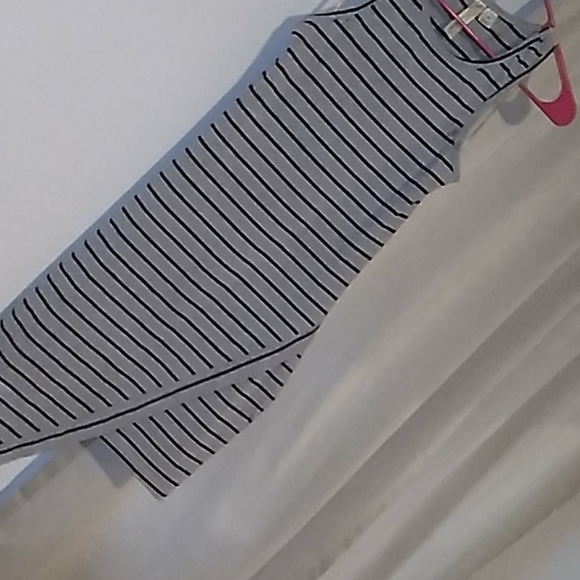 Worn once asymmetrical cotton dress gray with black stripes and tight fitted