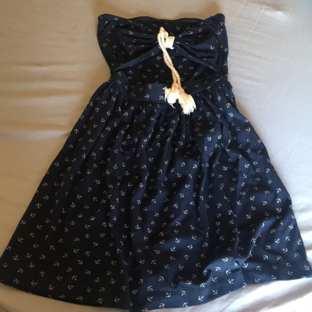 Nautical dress with anchors and knot front. Short and cute navy blue dress.