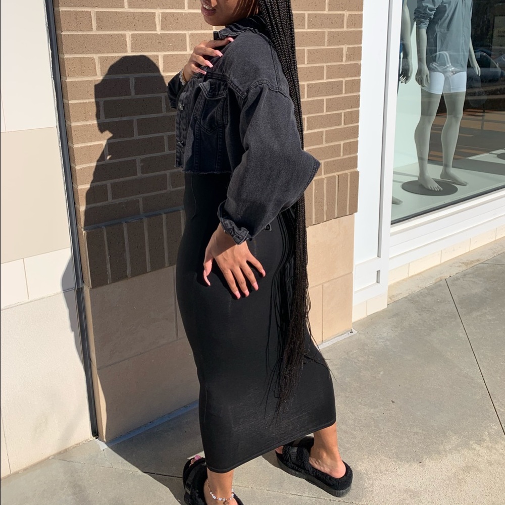 Black bodycon maxi dress. Super flattering and stretchy!!