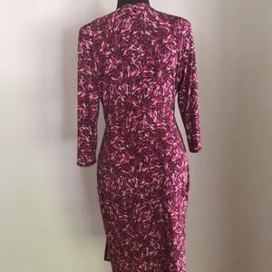 Laundry by design 3/4 length sleeve dress. Crisscross front cinched sided. Polyester spandex an easy wash and wear a dress.