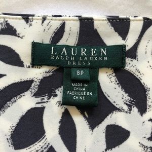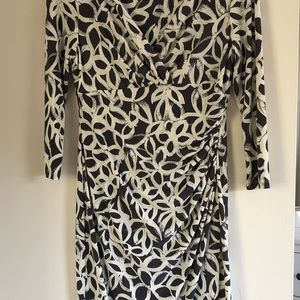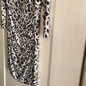 Ralph Lauren, jersey fabric, grey and white dress. Fitted with 3/4 length sleeves. Easy wash and wear care. Gently used.