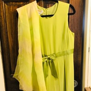 Lime Green dress with matching scarf. Excellent used condition. Like new. Satin green bow in the front. Size 12.