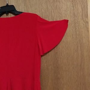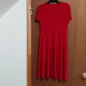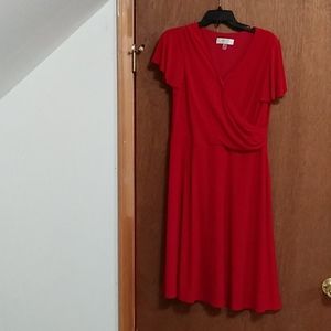 Red Kasper dress with A line flare with v neck and flare sleeves. Please see pictures.This is a soft flowy dress that could be worn to a wedding, a party, or to the office. In excellent condition.