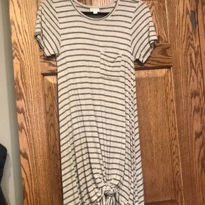 Long flowy short sleeve dress. Dark grey stripes with light grey stripes