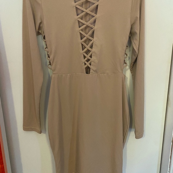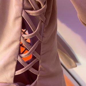 Pretty Blush pink party dress. Laced on front and down the sides. Worn once. No signs of wear or tearing. Fits tightly.