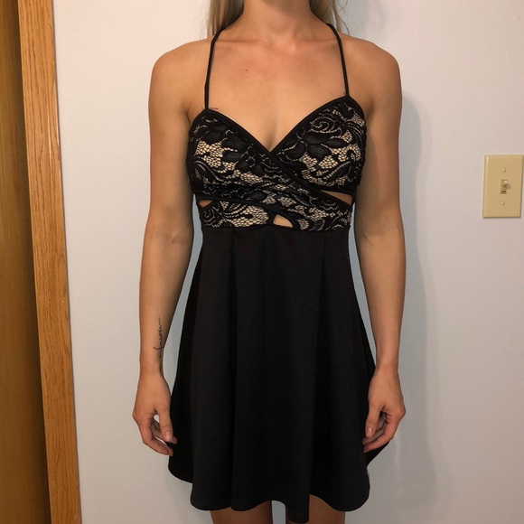 Windsor dress, black with nude undertone, with cutouts. Worn once!