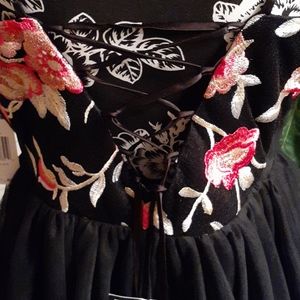 This little sexy black thing, is beautifully embroidered flowers and a lace up back is ready for any occasion.