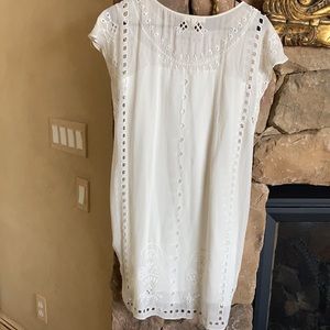 Silk, lined with shell, embroidered, short sleeves, summery, knee length, brand - moon & meadow from Bloomingdales, cream in color