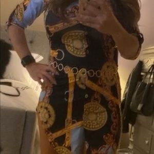 Multi colored dress goes great with a belt and boots