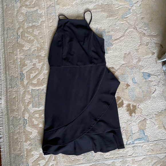 Black formal dress with side ruffle