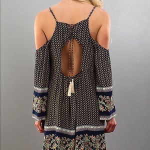 Beautiful cold shoulder navy blue multi print dress with key hole in the back