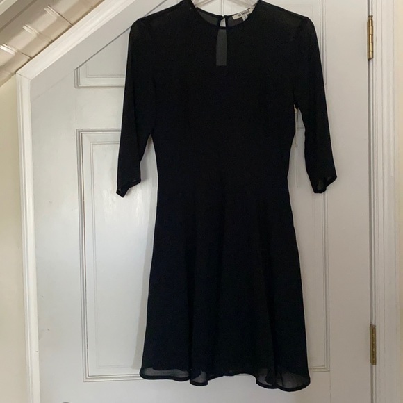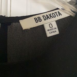 BB Dakota black dress. Goes right above knee and has an open back. Top is sheer but is also conservative.