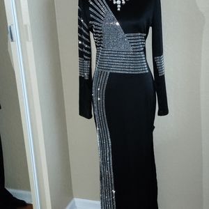 Sexy design evening gown.for any occasion .very elegant with sequins and a thigh high slit