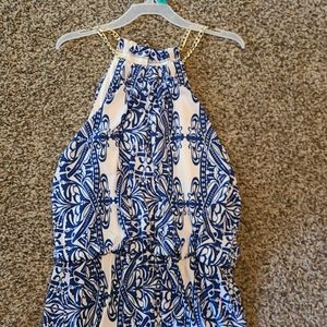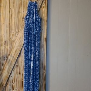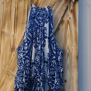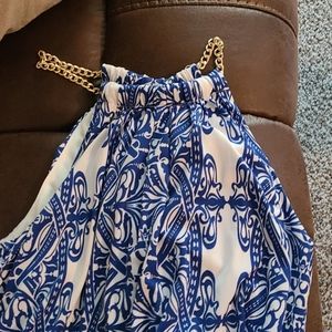 Blu/whi maxi, 54 inches top to bottom. Gold chain neckline