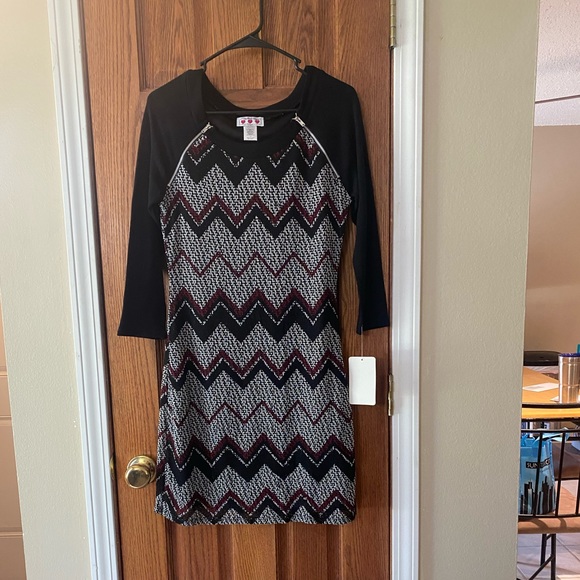 Cute, classy dress has a neat zipper design at the top. Three-quarter length sleeves. Never worn.