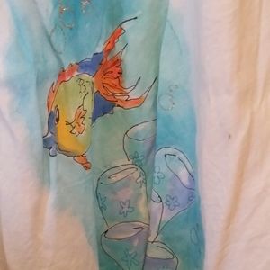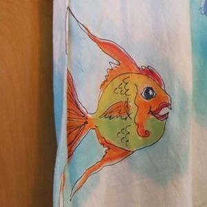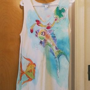 Dress was white. There is an artist in St.John U.S.V.I. that worked with me to select my favorite fish designs.