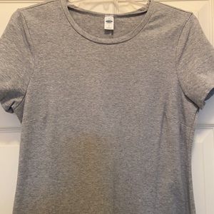 This T-shirt dress is solid light gray and is very soft. It does run small.