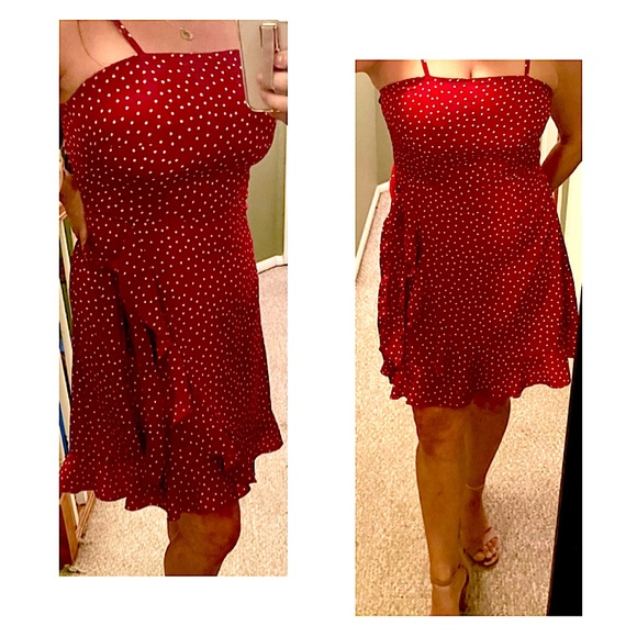 Sundress size Medium Red with white polka dots It ties on the side The back stretches