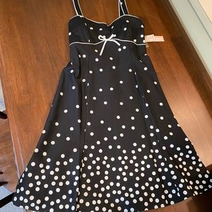 Black and white size 10 dress. Adjustable straps. Light padded built in bra. Never worn. New with tags. Please see images for fabric information.