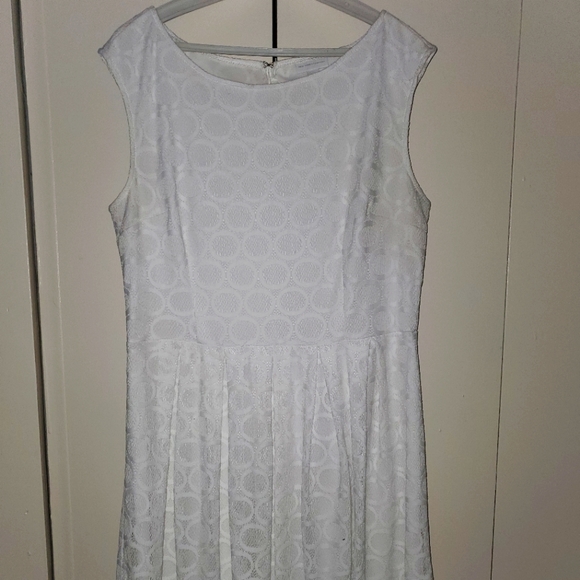 Beautiful white sleeveless crochet circle embellished fit and flare dress